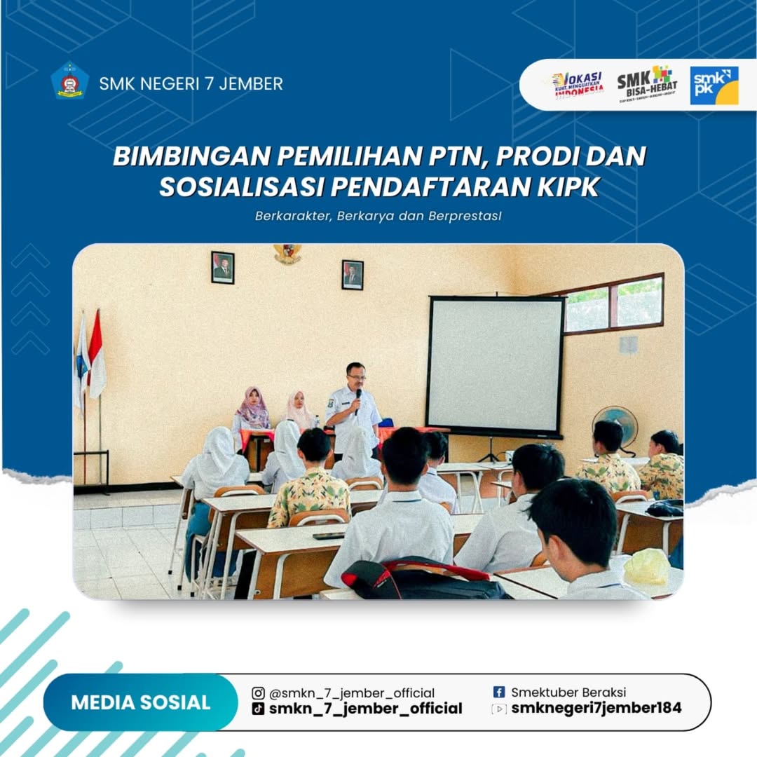 Semoga dengan bimbingan dan sosialisasi ini, siswa kelas XII SMKN 7 Jember dapat melanjutkan pendidikan ke perguruan tinggi dengan percaya diri dan mendapatkan kesempatan untuk meraih cita-cita mereka.