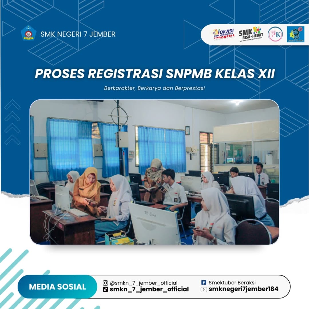 Pada hari Selasa, 21 Januari 2025, siswa kelas XII SMKN 7 Jember mengikuti kegiatan penting yaitu registrasi akun SNPMB. Kegiatan ini bertujuan untuk memfasilitasi siswa dalam mendaftar perguruan tinggi negeri melalui jalur seleksi nasional dan dapat membantu siswa dalam memahami proses pendaftaran dan memilih program studi yang sesuai.