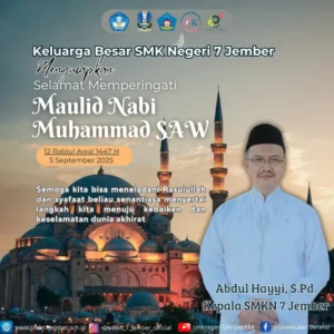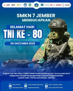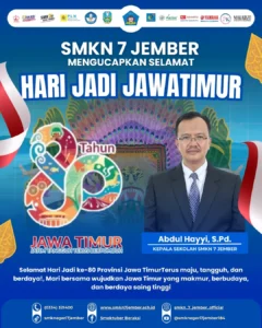 JEMBER, 12 OKTOBER 2025 – Keluarga besar SMK Negeri 7 Jember hari ini turut larut dalam suasana peringatan Hari Jadi ke-80 Provinsi Jawa Timur. Dengan tema “Jatim Tangguh, Terus Bertumbuh”, sekolah kejuruan unggulan ini menegaskan komitmennya untuk mencetak lulusan yang tidak hanya terampil, tetapi juga memiliki karakter kuat sebagai kontributor utama kemajuan Jawa Timur di […]